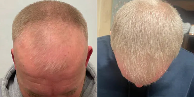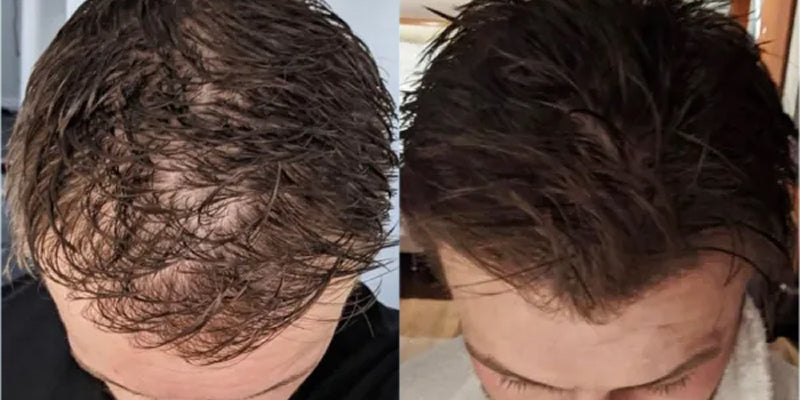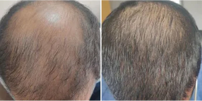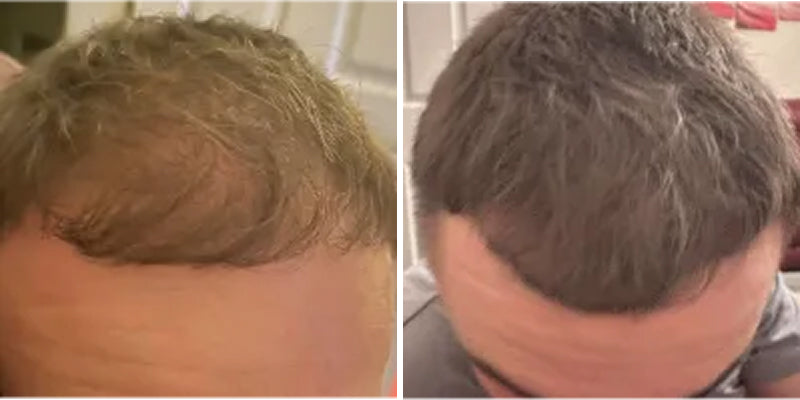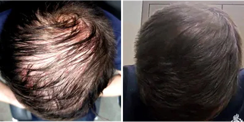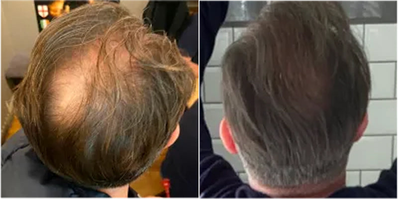 “So far so good after using just the Mnoxidil & Fnasteride spray. I've definitely noticed a difference and so have a few friends and family. Started Sep 12th, which is when the before picture was taken. The after image was mid Feb this year, so 5 months of use. Happy with the results so far, so will score a 4 out of 5. Hopefully in another few months it will be 5/5! Glad I tried it, because I was very sceptical. Definitely would recommend it using Dense."
