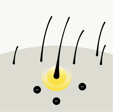 DHT Suppression: Slows follicle miniaturisation caused by dihydrotestosterone (DHT), a hormone that shrinks hair follicles in sensitive areas, allowing them to recover.