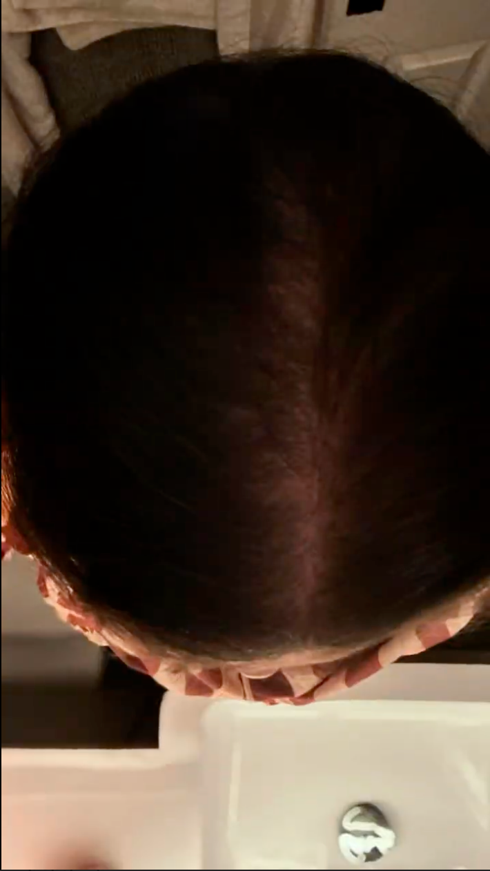 - Hair shedding reduces, and strands appear thicker at the roots.